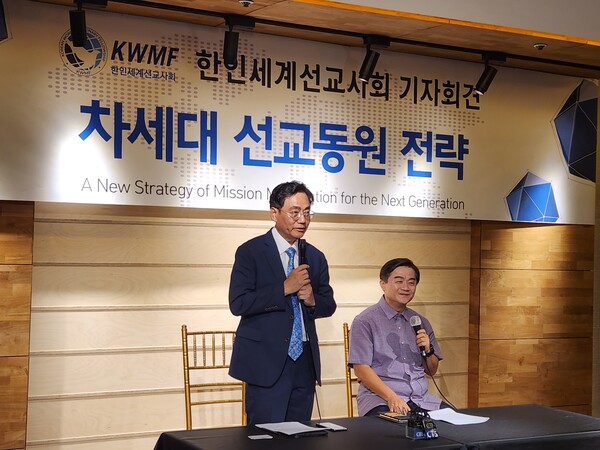 방도호 대표회장과 이근희 사무총장 주도로 본격적인 준비 박차 KWMF 방도호 대표회장(좌측)과 이근희 사무총장이 지난달 28일 기자회견을 열고 대회에 관해 설명했다. 지구촌 복음을 위해 세계 열방으로 나선 한인 선교사들의 모임 ‘한인세계선교사회(대표회장 방도호 선교사, KWMF; Korean World Missionary Fellowship)’가 차세대 선교 전략을 위해…